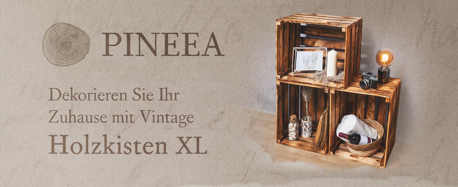 PINEEA Holzkiste Vintage 50x40x30 cm - Dekokiste aus Kiefernholz geeignet als Weinkiste, Obstkiste, Aufbewahrungskiste