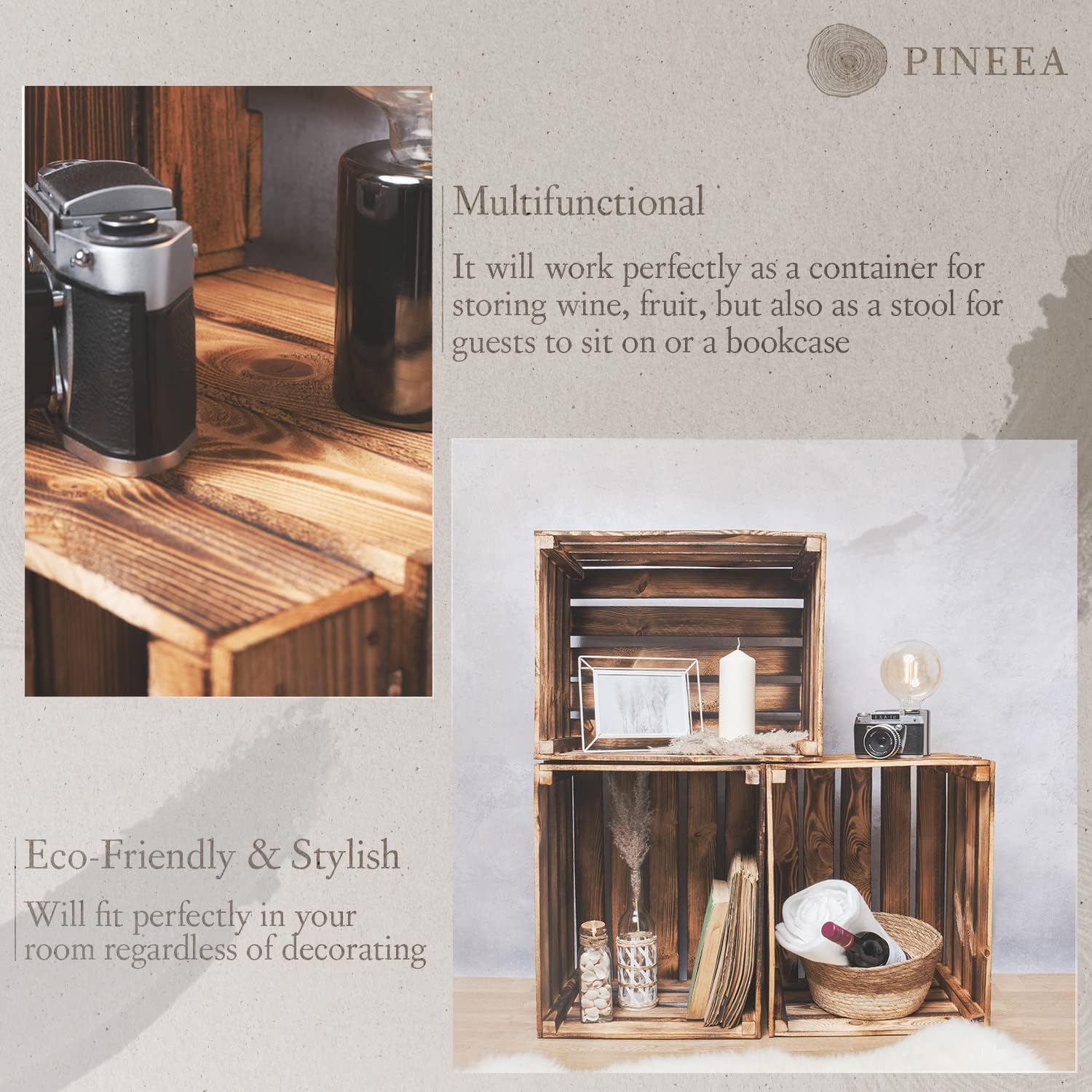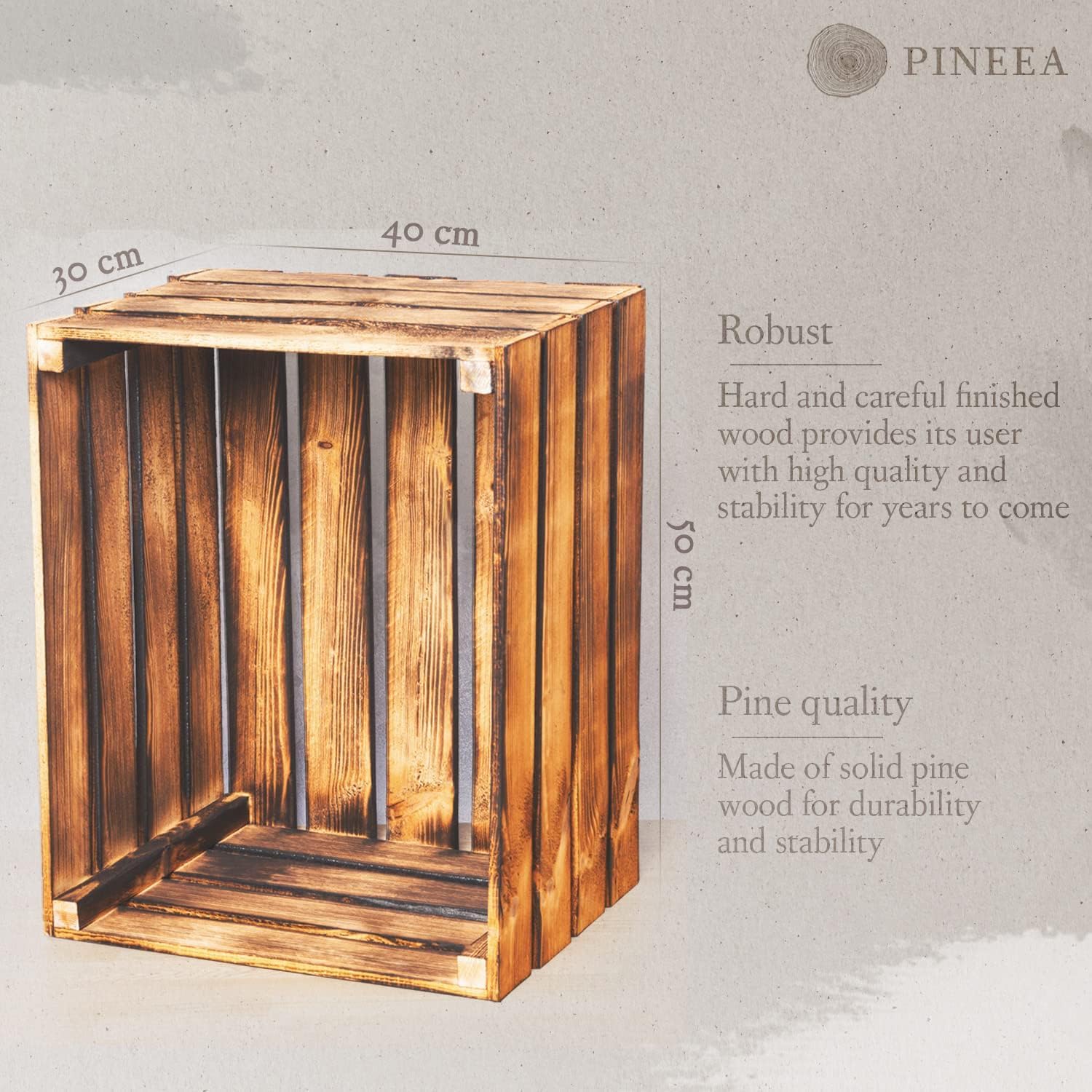 PINEEA Große Holzkiste Regal - Geflammt Vintage Obst- und Weinkiste 50x40x30 - Deko Holzbox