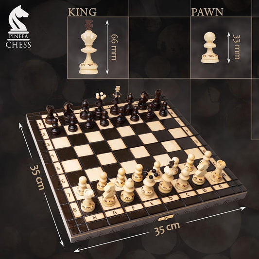 PINEEA Schachbrett Holz - Handgemachtes Schach Brett - Klappbares Chess Board Set