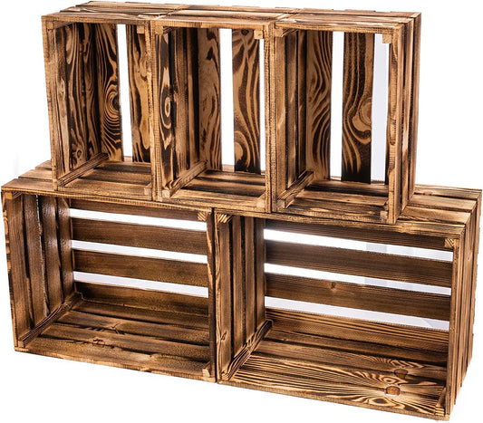 PINEEA Vintage Holzkisten Set - Große Weinkisten 2x (50x40x30) & 3x (30x20x15) - Natur Holzbox für Deko, Obst und Wein