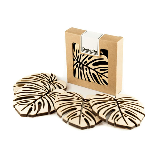 Decorify Untersetzer für Gläser aus Sperrholz - Holzuntersetzer 6 mm (Monstera)