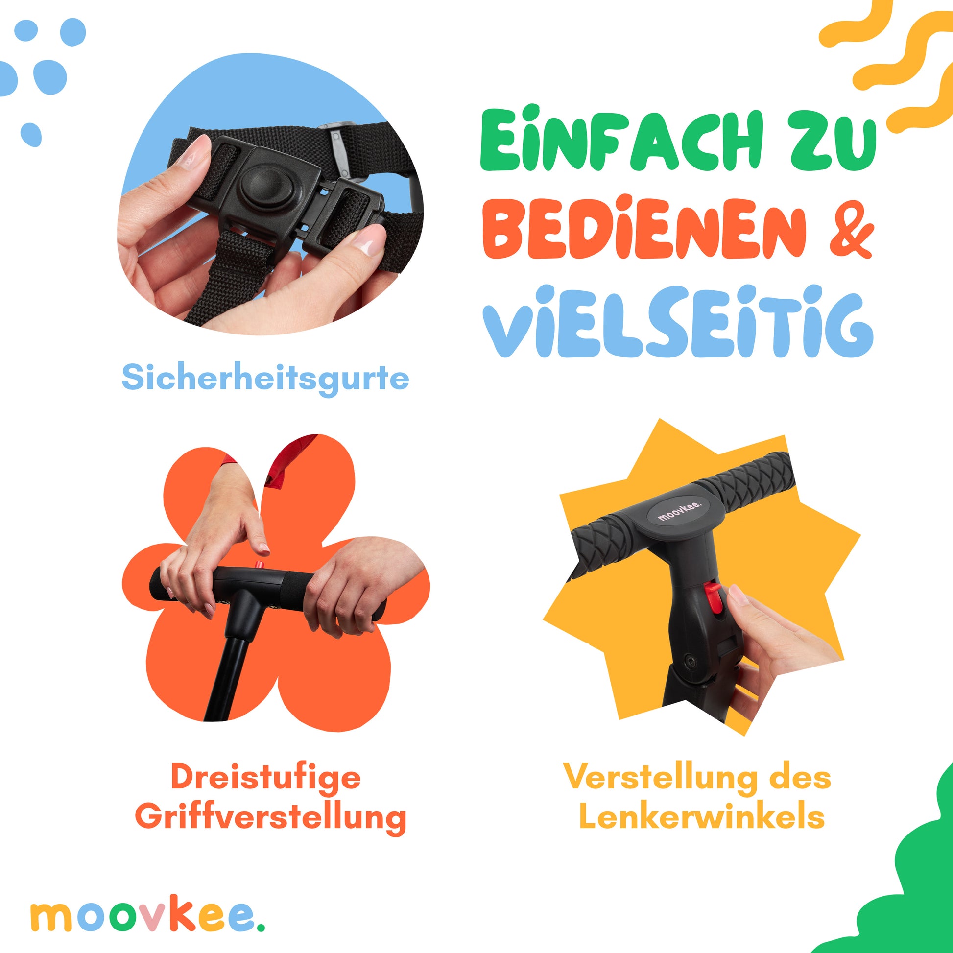 Lassen Sie Ihre Kinder in grenzenloses Abenteuer eintauchen! Das moovkee. Kinder Dreirad mit Stange ab 1 Jahr bietet 6 Konfigurationen ohne Werkzeug, langlebige Qualität und Sicherheit. Entdecken Sie den Spielspaß heute!Konfiguration 1
