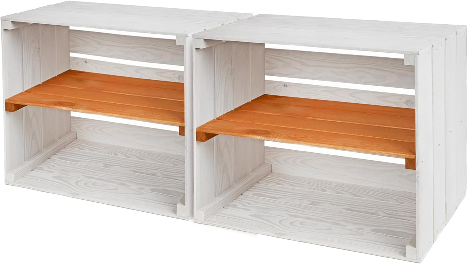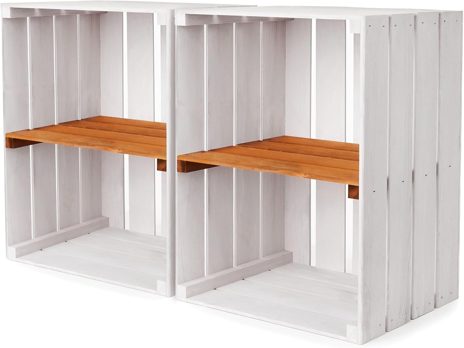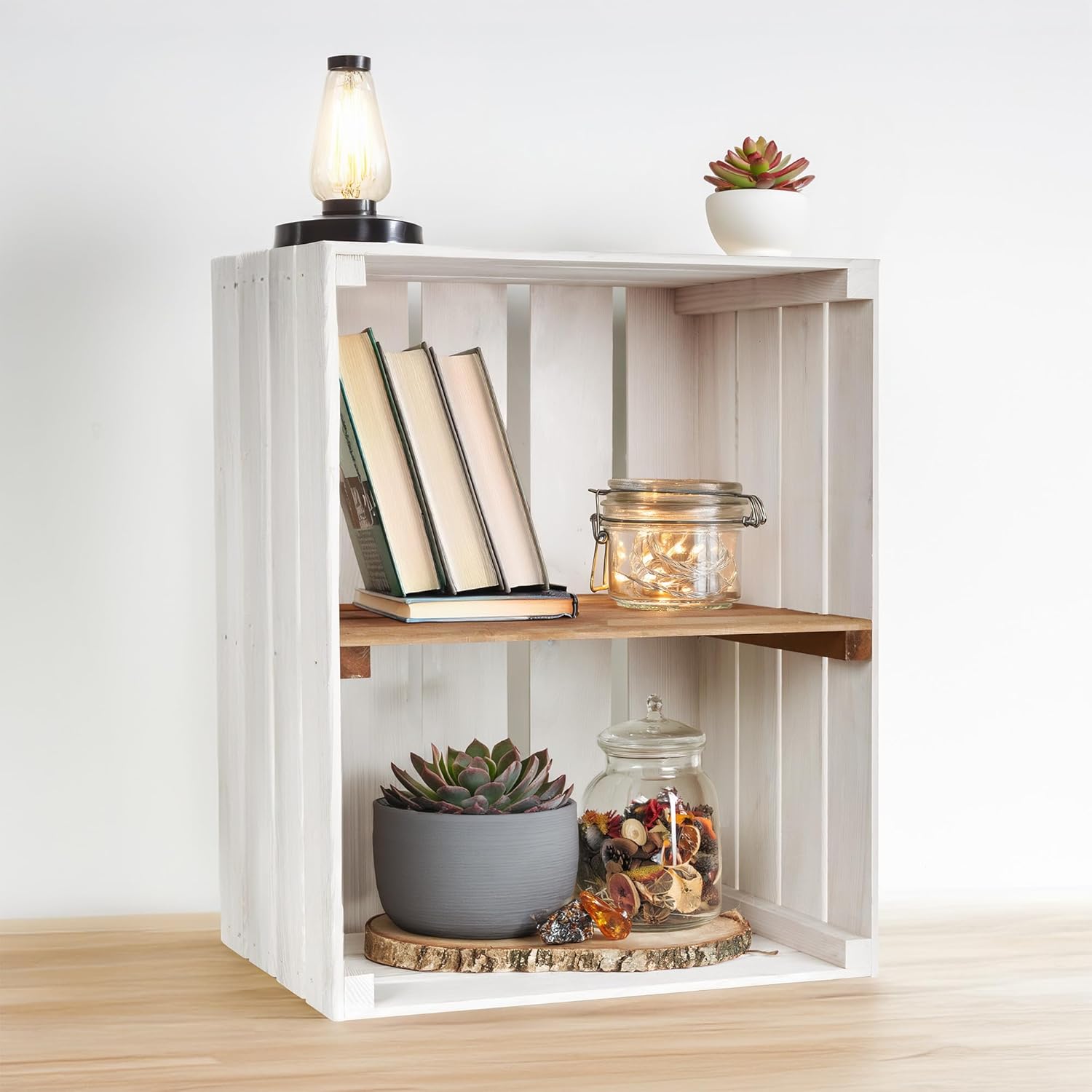 Umweltfreundlich und Stilvoll – PINEEA Weiße Holzkiste Groß mit Regal